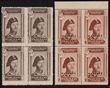 Polish Corps in Italy: 1946 Fieldpost set 45gr-2zl on greyish low quality paper, plus New Colours Fieldpost set 45gr-2zl, as well as Airmail 5zl/2zl, all in blks of 4. VF fresh 1st set & airmail MUH, 2nd set UN as issued. Sass 1-4, 9-12 & PA1 cat €2310+ as singles. Rare as blks. Airmail with 2014 Ceremuga AIEP photo cert. (36) (P)
