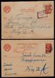 Soviet Russian Occup of Eastern Poland: 1940 use of Postal Stationery Postcards Workers 10k blue (2), or 20k red (2) sent to Polish soldiers in German POW camps, with extra stamps removed by camp censors. Scarce usages from the period when Nazi Germany & Soviet Union were allies. (4)