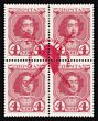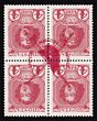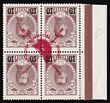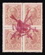 1917 Russian Revolution 'Crossed Swords & Cap' red opt Romanov 4k red blk of 4, error opt INVERTED. VF fresh 3M/1MUH. Scarce historical item! Exp Trachtenberg. |