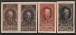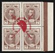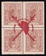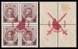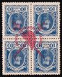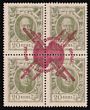 1917 Russian Revolution 'Crossed Swords & Cap' red opt Romanov 4k red blk of 4. VF fresh MLH. Scarce historical item! |