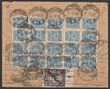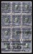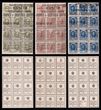 1917 Russian Revolution 'Proclamation' opt Romanov set 10k, 15k & 20k blks of 12 stamp currency printed card, opts being the text of the front page of Soviet Newspaper Izvestia no.5, error opt INVERTED. VF UN as made. Scarce historical items! Exp Trachtenberg. (3 blks of 12). (P) |