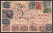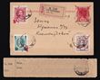 1917 Russian Revolution 'Crossed Swords & Cap' red opt Arms 3k lettercard (Mi K11), uprated same opt Romanov 4k, 7k, 10/7k brown & 20/14k green, tied by Ekaterinaberg 17.2.18 cds, with registered label & receipt. Very rare historical item. (P) |