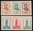 1934 Ten Years w/o Lenin set 1k-30k, being 'specimen' stamps from UPU distribution, with local 'SPECIMEN' h/s (type PORC7) applied by Portuguese Ministry for the Colonies. F-VF UN affixed to pieces ex archive pages. SG 667-72(s), Mi 488-93(s). Unique stamps from Portuguese India Goa Postal Archive UPU specimen collection. 2019 Ceremuga photo cert. (P) |