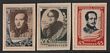1939 Lermontov set 15k-45k, being 'specimen' stamps from UPU distribution, with local 'AMOSTRA' h/s (type PORC8) applied by Portuguese Ministry for Colonies. F-VF UN affixed to pieces ex archive pgs. SG 884-86(s), Mi 726-28(s). Unique stamps from Portuguese India Goa Postal Archive UPU specimen collection. 2019 Ceremuga photo cert. (3) (P) |