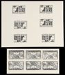 1942 Polish Army in Central Asia 50k 'Dojdziemy' issue, black print from defaced plate, full sheetlet of 6 with 3 tete-beche prs. SG M16a cat £2250 as normals. Also black print from defaced die of the "Stan" map essay in a sheetlet of 6 also in tete-beche arrangement ("Stan" essay was rejected by Soviets as map showed Wilno & Lwow still part of Poland). Superb UN as made. Interesting historical items. (P) |