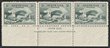 1929 Airmail 3d green type A booklet plate stamps,variety 'long wing to plane' in blk of 4. VF 2 MUH (inc variety)/2 MLH. SG 115b cat £375 M, should be double £750 = A$1500 MUH. ACSC 136d cat $1750 with additional stamps. (4) (Also see lot 1390) (P) |
