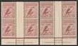 1932 Kookaburra 6d red brown Ash imprint blk of 4, plate 2 & LL marginal blk of 10 (MUH). Imprint F-VF MLH, blk VF MUH. SG 146. ACSC 150za cat $540. (14). |