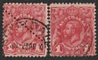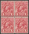 1913 KGV Engraved 1d carmine-red blk of 4 variety double perf. VF fresh 2 MUH/2 MLH. 59Cbi cat $460. (4) (P) |