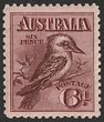 1914 Kookaburra 6d reddish-maroon engraved. VF fresh MUH, excellent centring. SG19 cat £75, should be at least double MUH £150 = A$300. ACSC 60B cat $275. (P) |