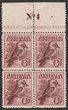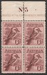 1932 Kookaburra 6d red-brown Ash imprint blks of 4. Plates 1 & 2. M/MUH. SG 146. ACSC 150 z za cat $280. |
