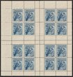 1928 Kookaburra 3d blue M/sheet UR marginal blk of 4 M/sheets. VF fresh MUH. SG MS 106a cat £520 M, should be at least double £1040 = A$2080 MUH. ACSC 133MS cat $1700. (4 M/S) (P) |