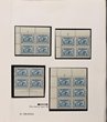 1932-65 pre-decimal imprint blks of 4-8 collection on hagners inc 1935 Silver Jubilee 2d Ash imprint with 'line above B' (166(3)zb). 1937 Zoological KGVI 1d to 1/4 inc 9d CofA wmk perf 15x14 no imprint blk, 1930s 1/6 Hermes, 1936 SA Centenary set 2d to 1/-, 1936 Cable set 2 & 3d with 2d Ash retouch varieties, 1947 Defs to 1/6, 1940 AIF 6d McCracken imprint blk, various gutter blks, cnr blks with diff perforations etc, few imprints have thinnish paper plus 3½d KGVI maroon with large part imprint in upper margin & 3d scarlet small part. F-VF MUH, about 30% F-VF MLH. SG var. ACSC cat $2200+. Large collection, fairly complete from 1946. (120 imprints) |