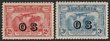 1931 Kingsford Smith opt OS set 2d & 3d. VF fresh MLH. SG O123-24 cat £360. ACSC 141-2(OS) cat $600. Scarce genuine set. 2025 Ceremuga AIEP photo cert. (2) (P) |