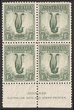1932 Lyrebird 1/- yellowish green Ash imprint blk of 4. VF MUH. SG 140a(var) cat £200 for M singles, should be at least double, £400 MUH, plus premium for imprint. ACSC 145Bzb cat $1250. Ex Sandy. (4). (P) |