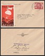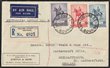 1934 Victorian Centenary 2d, 3d on Registered cover from Whim Creek WA with red Registered Label & 1934-35 Centenary vignette, cancels only fair, Reg Label scarce (current census population 5 people). 1931 First Airmail Melbourne-Launceston-Hobart FFC & 1946 Parachute Mail to Mornington Is flight cover with orange vignette. (3 covers) |