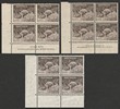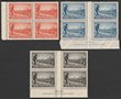 1934 Victorian Centenary set 2d, 3d & /- Ash imprint blks of 4, 3d & 1/- perf 10½, 2d perf 11½. Fresh VF MUH. SG 147-149(var). ACSC 152z-154za cat $1015 MUH. (12) (P) |