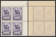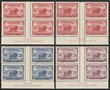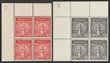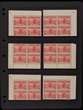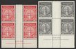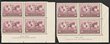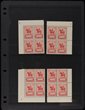 1937 KGVI Unofficial essays in purple no wmk, blks of 4 imperf & perf 14¾x14 single carmine no wmk perf 14¾x14. VF fresh MUH. (9). (P) |