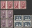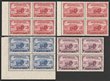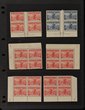 1938 KGVI Robes 5/- thin paper reddish lake (tinted paper) & brown lake (white paper) Authority imprint blks of 4, 10/- & £1 thick paper Ash imprint blks of 4 (1x £1 minor imperfections). VF fresh MUH. SG 176-178(var), ACSC 213A/B2, 214z, 216z cat $1450. (16). (P) |