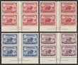 1934 Macarthur set 2d-9d inc 2d light & dark hills in Ash imprint blks of 4. Fresh VF MUH. SG 150-152(var). ACSC 157-160 cat $1160 MUH. (16) (P) |