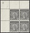 1934 Airmail 1/6 Hermes no wmk, perf 11, Ash imprint blk of 4 with variety 'retouched shading top left of globe'. Fresh VF 2 MLH/2 MUH. SG 153(var). ACSC 161za cat $475. (4) (P) |