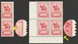 1935 KGV Silver Jubilee 2d scarlet cnr blk of 4 with variety 'double print', one albino. VF fresh MUH. SG 156a £1200+ for M singles, should be at least double £2400+ MUH. ACSC 166Ac cat $3000 plus huge premium for scarce shade. Very rare blk. The albino impression can be clearly seen by holding the blk at an angle. 2025 Ceremuga AIEP photo cert. (4) (P) |