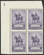 1935 KGV Silver Jubilee set 2d, 3d, 2/- violet plate no 1 blk of 4 - upper left. Fresh VF MUH, hinged in margin only. SG 158(var). ACSC 168Az cat $600. (4) (P) |