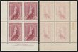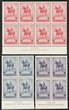 1935 ANZAC set 2d scarlet & 1/- black UL plate No 2 blks of 4. Superb fresh MUH, hinged in top margin only. SG 154/155(var). ACSC 164/165z cat $750. (8) (P) |