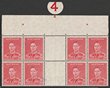 1937 Zoological Kookaburra 6d brown perf 13½x14, CofA wmk perf pip blk of 4 - bottom with crescent over pip which is also an Ash imprint gutter blk of 4. F-VF MLH/MUH. SG 172(var). ACSC 202A66 cat $250. (P) |