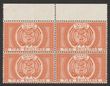 1882-86 Arms 10/- orange Postal Fiscal, top marginal blk of 4. Superb fresh MUH. SG F12 cat £400 for M singles, should be at least double, £800 MUH, plus premium for blk. (P)