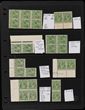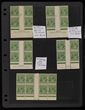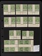 1d Green M/MUH variety collection/accumulation on 10 hagners inc 'saddle on emu' (1/36), 'PENAVY' & 'rusted corner' (3/23, 3/25), Die II 4 plus recumbent, blk of 6 with 'retouch dot before 1' & 'thin left frame' (ACSC 80(4)nb), blk of 6 with (8/13, 8/14 & 8/25), blk of 4 with 'retouches wattle line' (7/31), 'nick left frame' (7/32) & 'neck flaw, State III', part imprint with 'ferns' (7/54) & 'RA retouch' (7/60), various marginal cnr singles from different plates, some larger blks inc top marginal blk of 24. Some blks show signs of retouches but these have not been checked. Shades inc deep green. Generally G-VF MLH, about 30% MUH. SG 95(var). ACSC 81 cat approx $4000+. (250+)