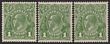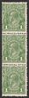 1d Green INVERTED wmk coil strip of 3 with typical coil trimmed side perfs, catalogued as an inv wmk strip of 2 MUH & 1M, but would be worth double or more as a coil. F M/MUH. SG95aw(var), ACSC81a cat $525 for inverted wmk. (3) (P)