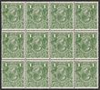 1d Green blk of 12 inverted wmk. Scarce multiple. Fresh VF MUH. SG 95aw £480, should be at least double, £960. MUH. ACSC 81Ba cat $2400. (12) (P)