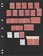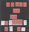 1½d Red collection on hagner inc 3 commercially used part Ash imprint singles, one with Rose Bay cds, 4 listed varieties inc 'flaw left wattles' (1R19), 'vertical scratch left wattles' (2L19), 'flaw King's neck' (2R28), 'retouch shading behind kangaroo - type B' (4L47), also misplaced perforation (perf OS) centred to right & part of left stamp design evident. Not listed in ACSC for this printing. Also 3 Mullett imprint prs UN with diff shades & plates. Usual condition, mostly G-FU. SG 96(var). ACSC 92(var) est cat $500+.