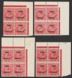 1d Green plate 4 study of imprint blks of 4 inc Mullett imprint blk of 6 with 'ferns' (7/54) & 'RA join' (7/60) in the unretouched state. Although it has tropicalisation, this is quite scarce (ACSC 81(4)z, cat $1500), Ash imprint blks with 'ferns' & 'RA retouch' (ACSC 81(4)zb, $1000 ea), both have N over N setting but one has perfs through to the base (?), Ash imprint with both 'ferns' & 'RA join retouch' with N over A setting (ACSC 81(4)zd, cat $200), Ash sans-serif imprint blk with variety 'spot on L' (cat $200). Scarce collection & one of the imprints is not listed. Ash imprints are F-VF, Mullett imprint sl tropicalised. SG 95(var). ACSC 81(4)z cat $3900. (22)