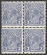 3d Deep blue Die II blk of 4 plated as 5R32-33, 5R38-39 with varieties 'flaws on R of Australia' (5R33) & 'retouch ST of Australia' (5R38). Good positional piece. VF fresh 2MLH/2MUH. SG 100b(var). ACSC 108Bf & g cat $240, should be at least double, MUH, var, plus other $480. (4)