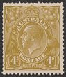 4d Greenish-olive with variety 'roo's tongue out' (4L25). F-VF MLH. SG 102(var), ACSC 116B(4)d cat $120.