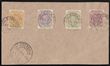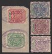 1899-1900 Boer invasion of Cape Colony - Postmark: CDS 'Colesberg FE 27 19' cds on Transvaal Arms 3d to 1/- with '19' meant to represent '1900', year error confirmed by Pretoria 1900 cds on same piece, apparently the new century postmarkers yet to arrive. All on single large piece. SG 220-23. (4) (P) |