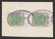 1899-1900 Boer invasion of Natal Postmark: Oval 'Veld Post ZAR Charlestown 19 APR 1900' on Transvaal Arms ½d green (2) full or near full violet strikes on piece. SG 215. |