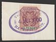 1899-1900 Boer invasion of Natal Postmark: Oval 'Veld Post ZAR Hattingspruit 14 MEI 1900' on Transvaal Arms 3d purple & green, full violet strike on piece. SG 220 |