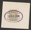 1899-1900 Boer invasion of Natal Postmark: Oval 'Veldpost ZAR Hattingspruit 15 DEC 1899' on Transvaal Arms 4d olive & green, full violet strike on piece. SG 221. |
