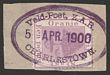 1899-1900 Boer invasion of Natal Postmark: Oval 'Veld-Post ZAR Charlestown 5 APR 1900' on OFS Tree 1d purple, full violet strike on piece. SG 68. Rare combination. |