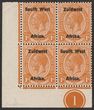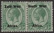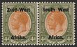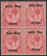 1923 setting I opt KGV ½d green, bilingual blk of 4, variety opt shifted downwards so Afrika or Africa is between the stamps. VF M. Scott 1(var). SG 1(var).