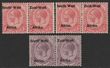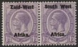 1923 setting I opt KGV 2d dull purple, bilingual horiz pr with variety '2 dots before Africa' plus another 2d pr & 6d pr both with variety 'broken T in West'. F-VF fresh MLH. Scott 3 & 6(var). SG 3 & 6(var) cat £33 as normals.