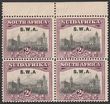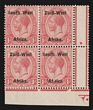1923 setting I opt KGV 4d orange-yellow & sage-green, LL cnr marginal bilingual blk of 4 with plate no. 1. VF fresh MLH/MUH. Scott 5 cat US$42+ for M prs. SG 5 cat £42 for M prs, should be at least double MUH so £63 for this blk plus premium for plate no.
