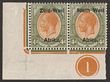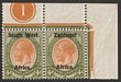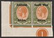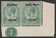 1923 setting I opt KGV 4d orange-yellow & sage-green, LL cnr marginal bilingual horiz pr with plate no. 1. VF fresh MLH. Scott 5 cat US$21+. SG 5 cat £21 plus premium for plate no.
