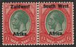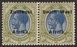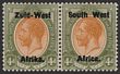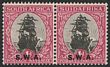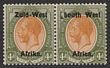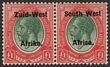 1927-30 'S.W.A' opt Union Buildings 2d grey & maroon, horiz bilingual pr, perf 14x13½, error opt DOUBLE one INVERTED. VF fresh MLH. Scott 99d cat US$800. SG 60cb cat £750. Rare as only 1 sheet recorded. Exp Holcombe. (P)