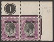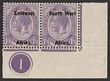 1923 setting I opt KGV 2d dull purple, bottom marginal bilingual horiz pr with plate no. 1. VF fresh M. Scott 3 cat US$10+. SG 3 cat £12 plus premium for plate no.