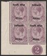 1923 setting I opt KGV 1d rose-red, blk of 4, bottom right stamp variety 'WES for WEST'. VF fresh MLH/MUH, variety pr MUH. SG 2/2b cat £200 for M prs, should be at least double £400 MUH for this blk. (P)