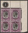 1923 setting I opt KGV 6d black & violet, LL cnr marginal bilingual horiz pr with plate no. 1. VF fresh M. Scott 6 cat US$9+. SG 6 cat £9 plus premium for plate no.