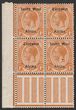 1927-30 'S.W.A.' opt Native Kraal 4d brown, top marginal bilingual blk of 4, LL stamp 'without stop after A'. VF fresh MLH/MUH, variety pr MUH. Scott 101/101c cat US$109 for M prs. SG 62/62a cat £102 for M prs, should be at least double £192 MUH for this blk. (P)